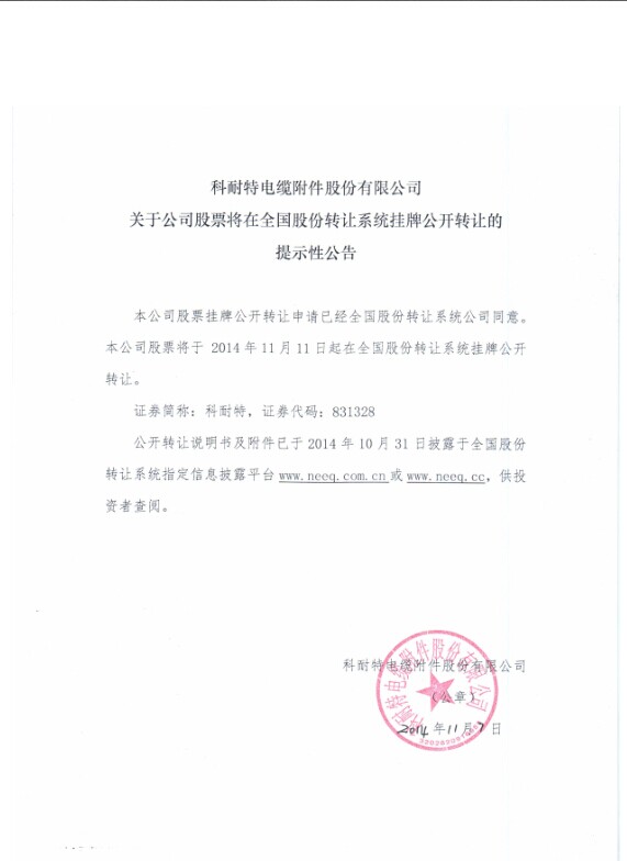 热烈庆祝科耐特输变电科技股份有限公司在全国中小企业股份转让系统挂牌!