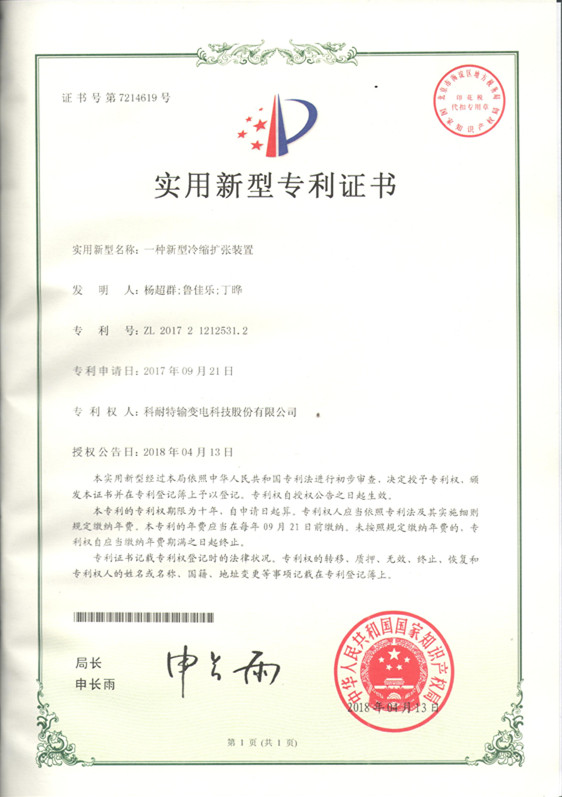 (一)“一种新型冷缩扩张装置”实用新型专利证书