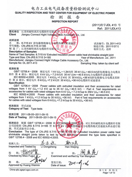 8.7-15kV挤包橡塑绝缘电缆热缩直通接头13