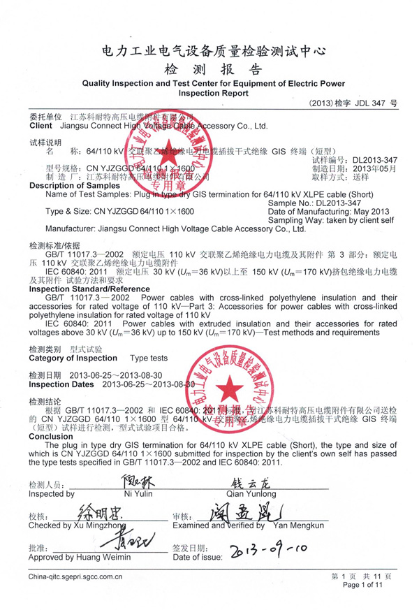 64-110kV交联聚乙烯绝缘电力电缆插拔干式绝缘GIS终端(短型)1