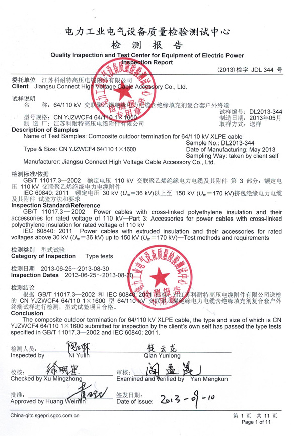 64-110kV交联聚乙烯绝缘电力电缆含绝缘填充剂复合套户外终端1