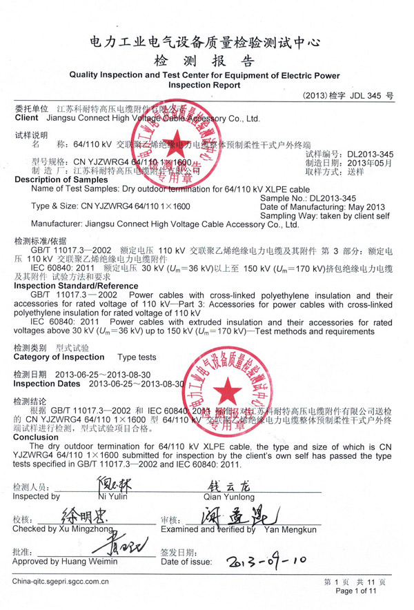 64-110kV交联聚乙烯绝缘电力电缆整体预制干式户外终端1